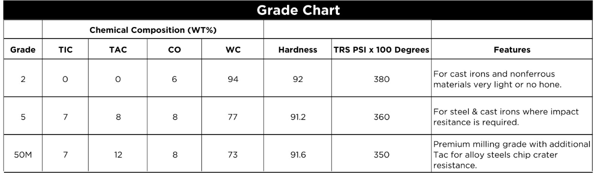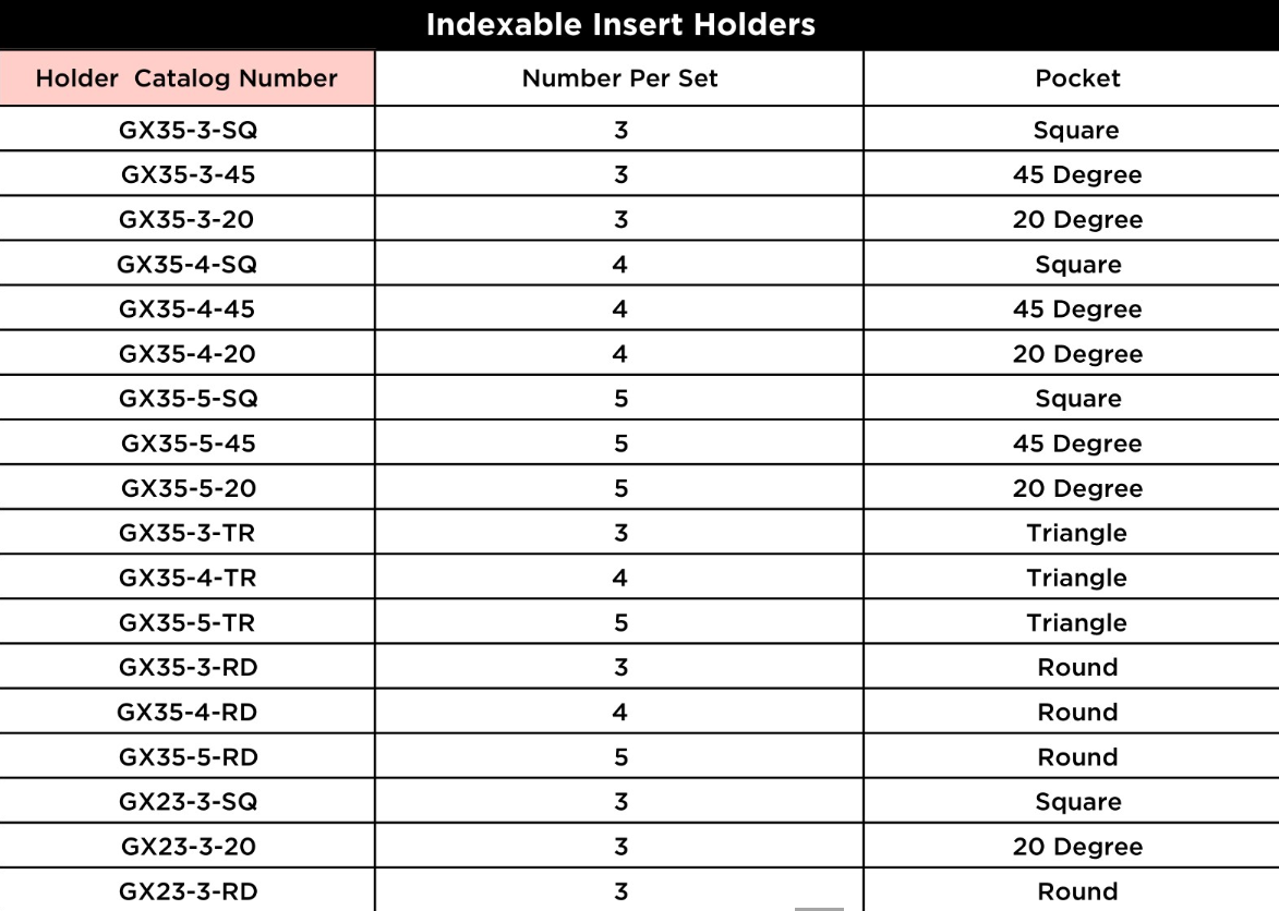 Genesee’s large selection of precision ground GEN-DEX® inserts provide the distinct advantage of the “C” tolerance on I.C. and thickness. This feature, normally available only by special order, contributes to optimum, balanced cutting of the hollow mill.