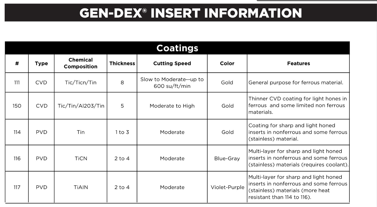 Coated Grades: as indicated by number following (slash) Example: SCCT32.52A/114 (See Coatings Chart)