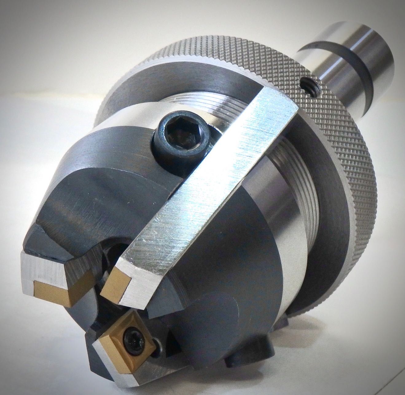 Combines standard ISO inserts in precision, match ground, uniformly adjustable insert holders for hollow milling both ferrous and non-ferrous materials.